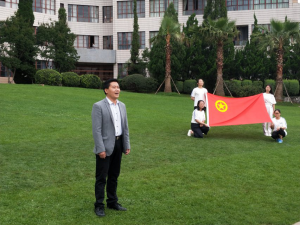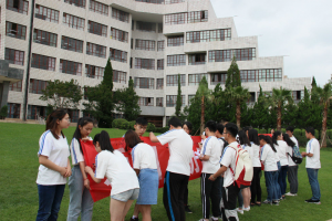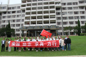 最后,参加本次出行仪式的全体老师同学在大草坪前合影留念。