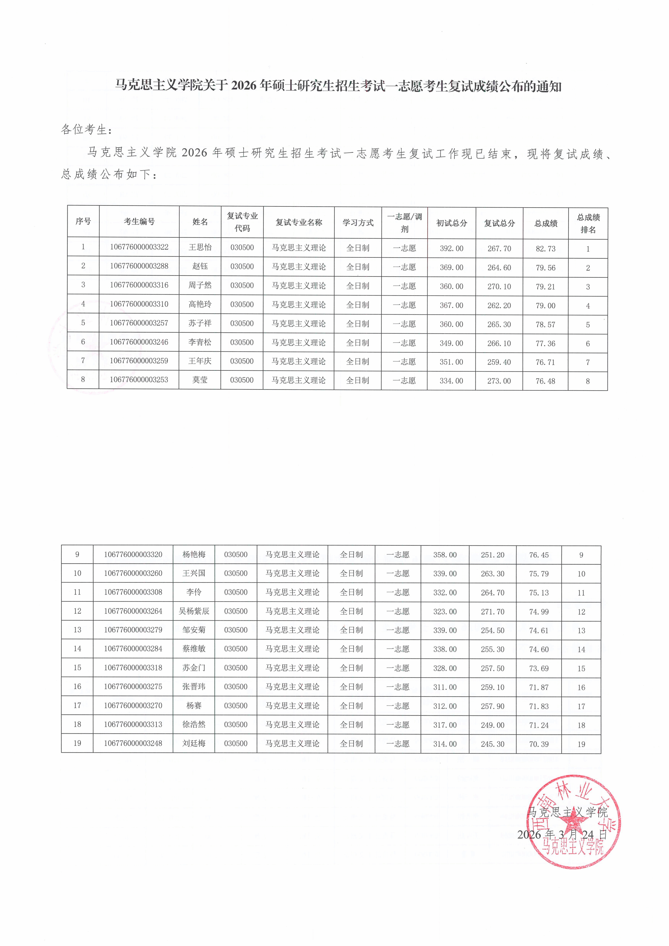 bw必威西汉姆联官方网站关于2026年硕士研究生招生考试一志愿考生复试成绩公布的通知